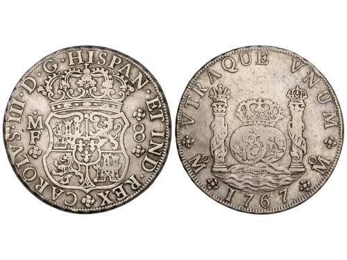 CARLOS III. 8 Reales. 1767. MÉXICO. M.F. 26,76 grs. Columnario. (Pequeños golpecitos). AC-1092. MBC-.