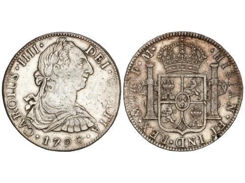 CARLOS IV. 8 Reales. 1790. MÉXICO. F.M. 26,62 grs. Busto de Carlos III. Ordinal IIII. (Pequeños golpecitos y rayitas). AC-952. MBC/MBC+.