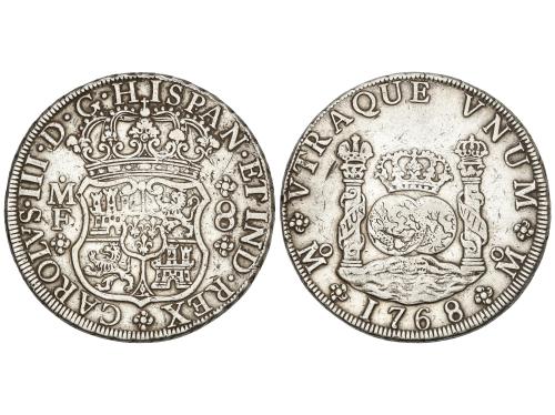 CARLOS III. 8 Reales. 1768. MÉXICO. M.F. 26,69 grs. Columnario. (Pequeños golpecitos, limpiada). AC-1094. MBC.