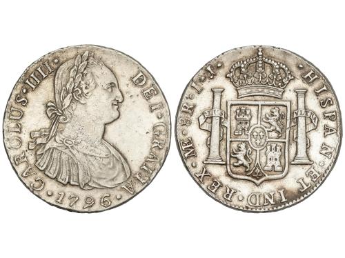 CARLOS IV. 8 Reales. 1796. LIMA. I.J. 26,81 grs. (Leves golpecitos, algo limpiada). AC-913. MBC+.
