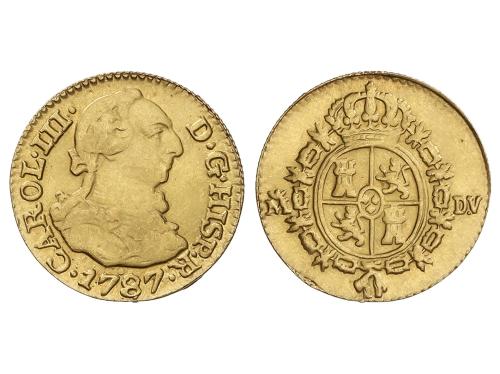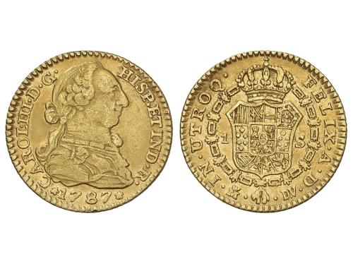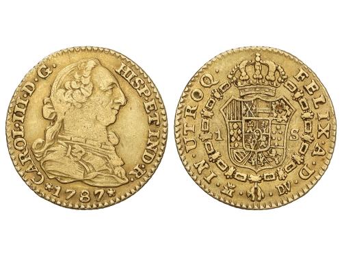 CARLOS III. 1 Escudo. 1787. MADRID. D.V. 3,33 grs. (Rayitas en anverso). AC-1370. MBC.