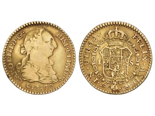 CARLOS III. 1 Escudo. 1787. SEVILLA. C.M. 3,30 grs. (Cospel algo doblado). AC-1505. MBC-/MBC.