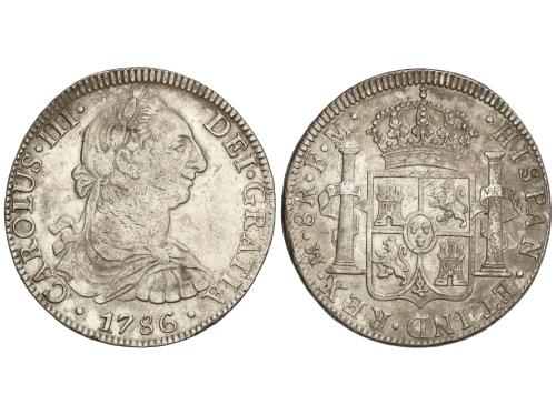 CARLOS III. 8 Reales. 1786. MÉXICO. F.M. 26,83 grs. (Rayitas en anverso). AC-1129. MBC.