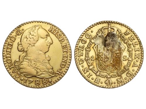 CARLOS III. 1 Escudo. 1788. MADRID. M. 3,26 grs. (Limpiada y resto de soldadura en reverso). AC-1373. MBC-.