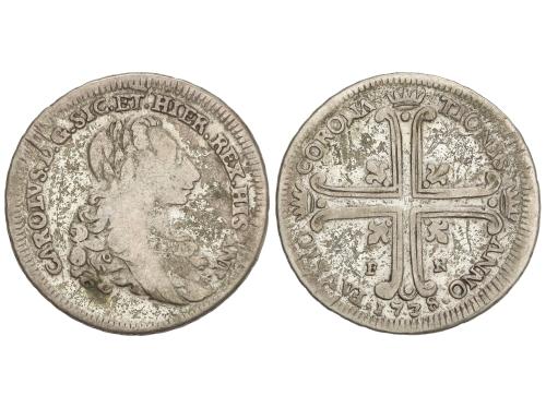 CARLOS III. 6 Tari. 1738-FN. PALERMO. 13,07 grs. AR. Vti-Tipo 32. BC+.