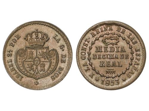 ISABEL II. 1/2 Décima de Real. 1853. SEGOVIA. 1,84 grs. AC-140. EBC+.