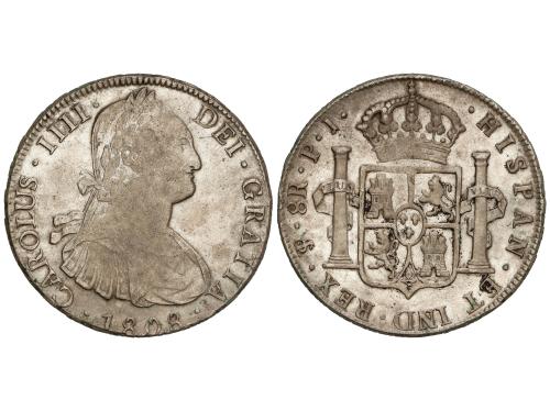 CARLOS IV. 8 Reales. 1808. POTOSÍ. P.J. 26,49 grs. Acuñación algo floja en parte. Ligera pátina irregular. AC-1014. MBC+.