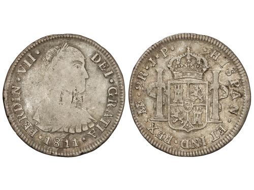 FERNANDO VII. 2 Reales. 1811. LIMA. J.P. 6,30 grs. Busto indígena. AC-810. MBC-/MBC.