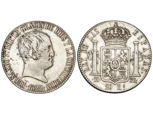 FERNANDO VII. 20 Reales. 1822. MADRID. S.R. 26,64 grs. ESCASA. AC-1282. MBC.