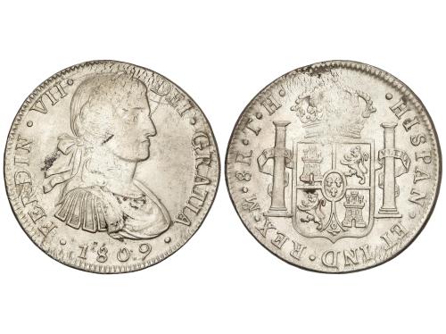 FERNANDO VII. 8 Reales. 1809. MÉXICO. T.H. 26,63 grs. Busto imaginario. (Zona de plata agria, leves rayitas de limpieza). AC-1308. (MBC+).