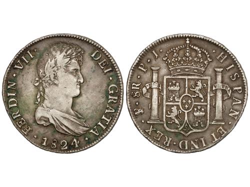 FERNANDO VII. 8 Reales. 1824. POTOSÍ. P.J. 27,07 grs. Pátina. AC-1391. MBC.