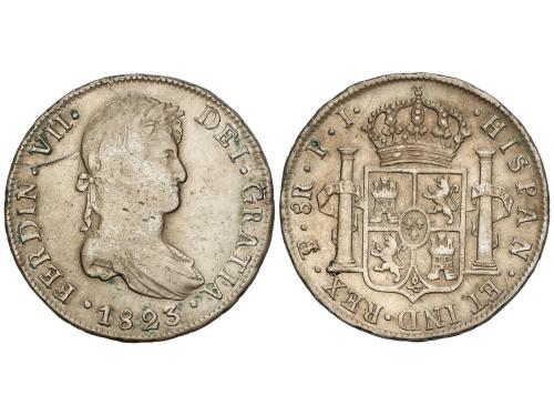 FERNANDO VII. 8 Reales. 1823. POTOSÍ. P.J. 26,78 grs. (Golpecitos). AC-1388. MBC.