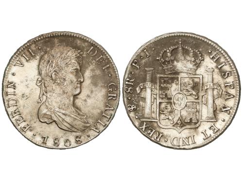 FERNANDO VII. 8 Reales. 1808. POTOSÍ. P.J. 26,86 grs. (Oxidaciones limpiadas). AC-1373. MBC+.