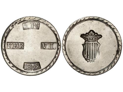 FERNANDO VII. 5 Pesetas. 1809. TARRAGONA. 26,19 grs. Cero de la fecha pequeño (18o9). Escudo ancho. AC-1429. MBC.