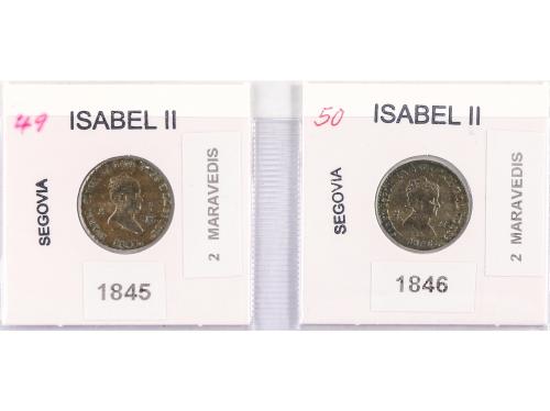 ISABEL II. Lote 2 monedas 2 Maravedís. 1845 y 1846. SEGOVIA. AC- 57, 58. EBC-.