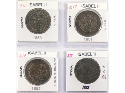 ISABEL II. Lote 4 monedas 1/2 Real. 1850 A 1853. SEGOVIA. AC-155/158. MBC- a MBC.