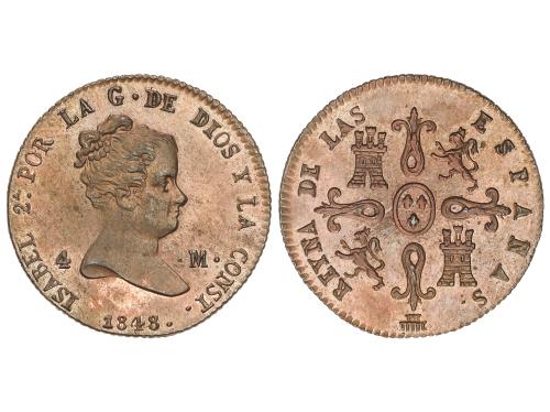 ISABEL II. 4 Maravedís. 1848. SEGOVIA. Brillo original. AC-91. EBC+.
