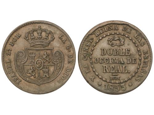 ISABEL II. Doble Décima de Real. 1853. SEGOVIA. 7,38 grs. ESCASA. AC-148. MBC+.