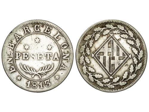 OCUPACIÓN NAPOLEÓNICA de CATALUNYA. 1 Peseta. 1813. BARCELONA. 5,22 grs. Distinta C en BARCELONA. AC-38. MBC-.