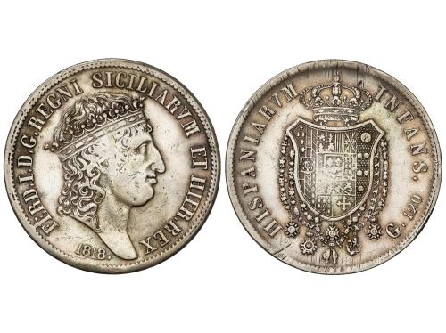 INFANTES DE ESPAÑA. Piastra (120 Grana). 1818. FERNANDO de DOS SICILIAS. NÁPOLES. 27,42 grs. AR. MIR-461/1; Vti-315. MBC/MBC+.