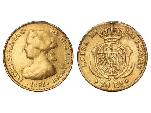 ISABEL II. 20 Reales. 1861. MADRID. 1,64 grs. (Descolgada). AC-672. MBC-.
