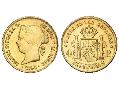ISABEL II. 1 Peso. 1865. MANILA. 1,69 grs. AU. (Rayitas). AC-829. MBC.