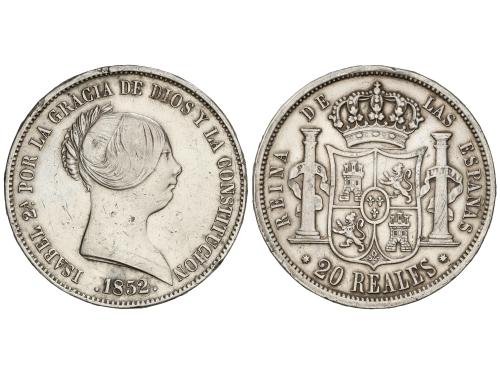 ISABEL II. 20 Reales. 1852. SEVILLA. 25,75 grs. (Hojita en canto y golpecitos). AC-628. MBC.