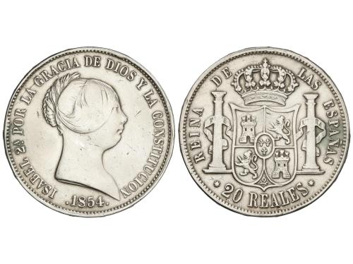 ISABEL II. 20 Reales. 1854. SEVILLA. 25,60 grs. AC-629. MBC.