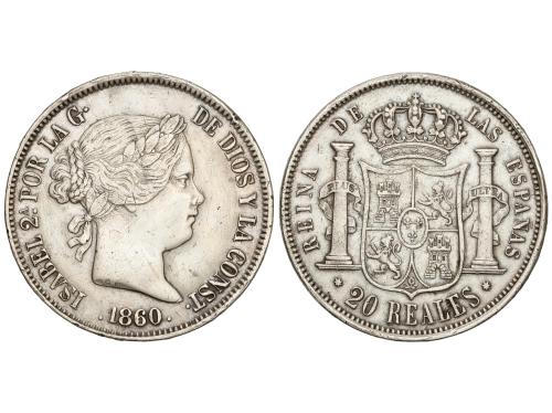 ISABEL II. 20 Reales. 1860. SEVILLA. 25,86 grs. (Limpiada). AC-639. MBC+/MBC.