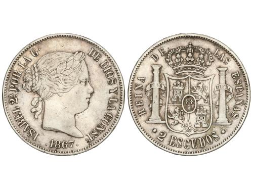ISABEL II. 2 Escudos. 1867. MADRID. 25,77 grs. AC-647. MBC.