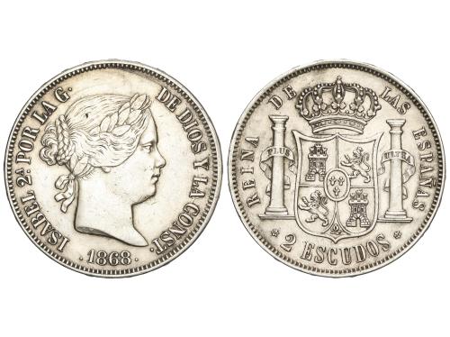 ISABEL II. 2 Escudos. 1868. MADRID. (*18-68). 25,81 grs. AC-648. MBC+.