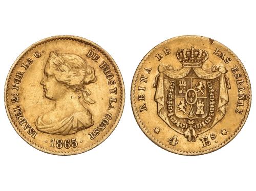 ISABEL II. 4 Escudos. 1865. MADRID. 3,28 grs. (Pequeña prueba de metal en canto). AC-688. MBC.