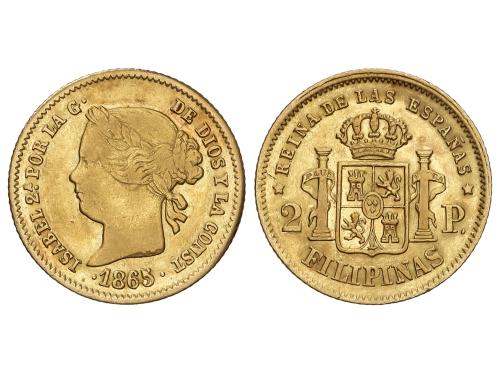 ISABEL II. 2 Pesos. 1865. MANILA. 3,35 grs. AC-845. MBC.