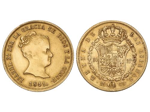 ISABEL II. 80 Reales. 1841. MADRID. C.L. 6,70 grs. (Acuñación algo floja en anverso). AC-728. MBC.