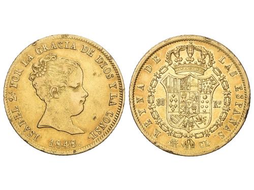 ISABEL II. 80 Reales. 1848. MADRID. C.L. 6,73 grs. (Golpecitos en canto). AC-735. MBC.