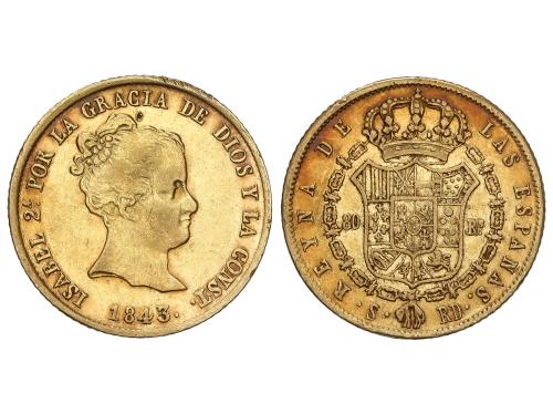 ISABEL II. 80 Reales. 1843. MADRID. C.L. 6,72 grs. AC-730. MBC.