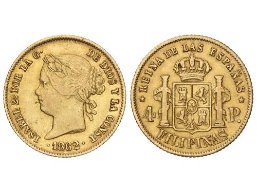 ISABEL II. 4 Pesos. 1862. MANILA. 6,75 grs. AC-854. MBC.
