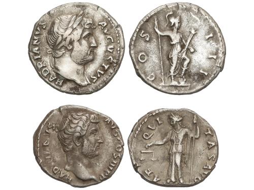 IMPERIO ROMANO. Lote 2 monedas Denario. 125-138 d.C. ADRIANO. AR. AEQVITAS AVG C-122 y COS III Roma con lanza y parazonium. A EXAMINAR. MBC.