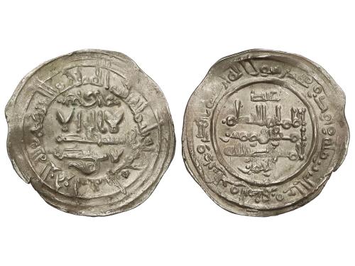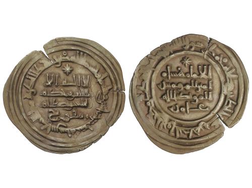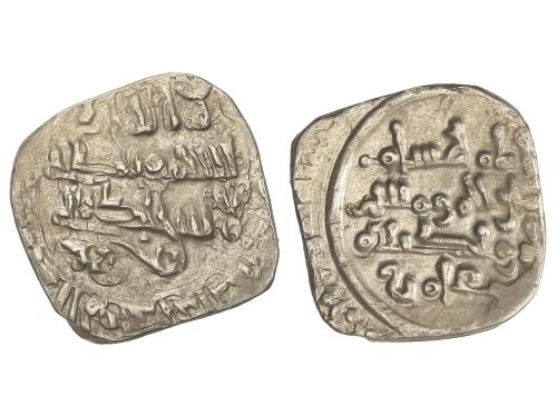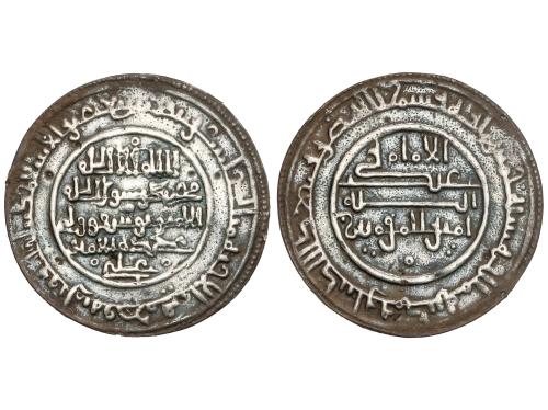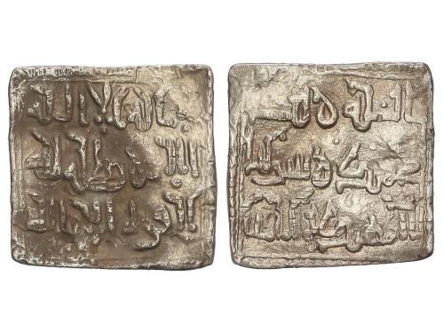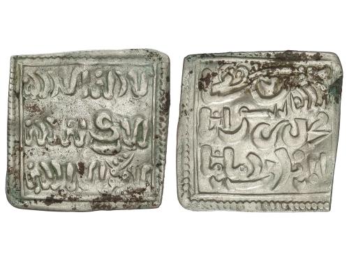 ALMOHADES. Dirham. ANÓNIMA en nombre de AL-MAHDI. 1,53 grs. Esta pieza presenta una caligrafía ´cúfica ornamental´ muy similar a las monedas atribuidas a Abu Hafs Omar al-Murtala con ceca ´Al-Hadrat al-Muminiya al-Murtadiya´. Posiblemente fue acuñada en la misma época por algún gobernador rebelde. ESCASA. Hazard-1123 var.; Hohertz (2018)-617. MBC+.