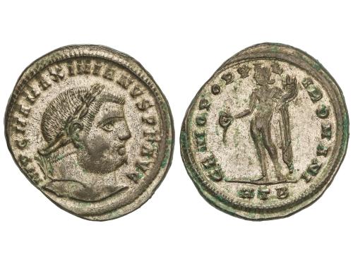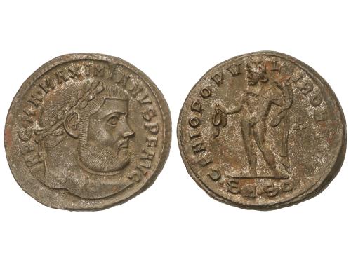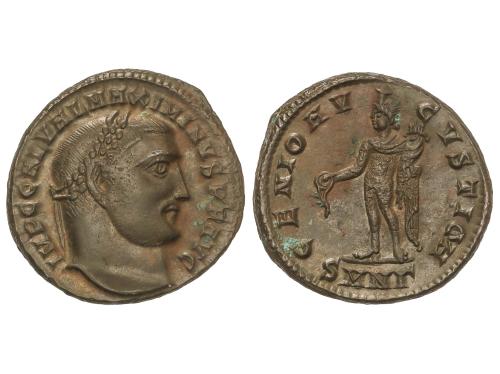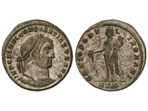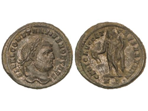 IMPERIO ROMANO. Follis. 295-296 d.C. CONSTANCIO CLORO. CYZICUS. Anv.: FL. VAL. CONSTANTINVS NOB CAES. Cabeza laureada a derecha. Rev.: GENIO AVGG. ET CAESARVM MN. Genio a izquierda. En exergo KB. 9,93 grs. Pequeños restos de plateado original. C-58. EBC.